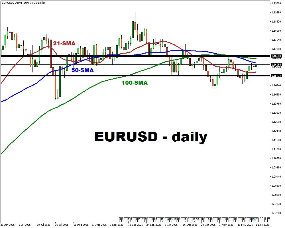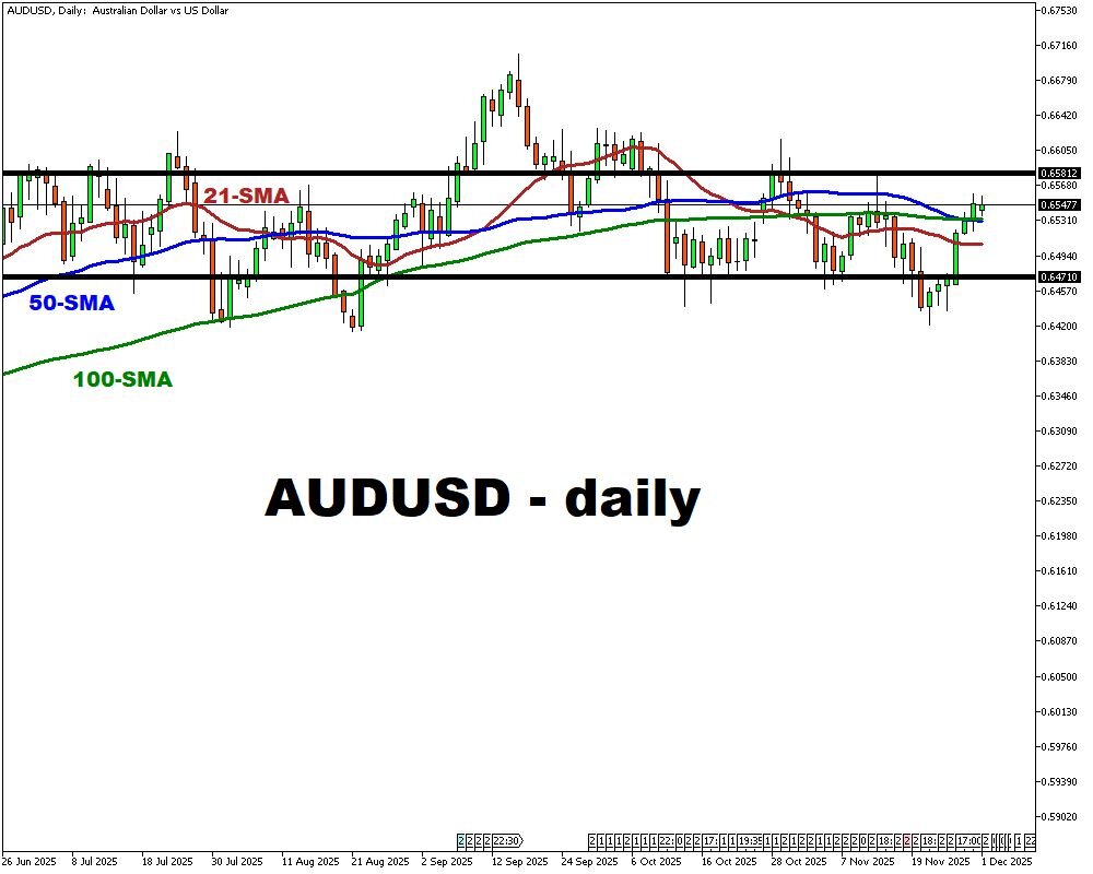For EURUSD, the focus shifts to the latest Eurozone inflation update as markets watch how price trends evolve into year-end. For AUDUSD, Australia’s upcoming GDP release offers insight into whether economic momentum is stabilizing after a period of uneven growth.